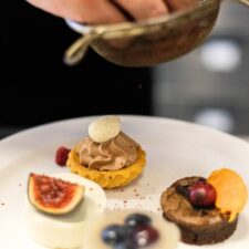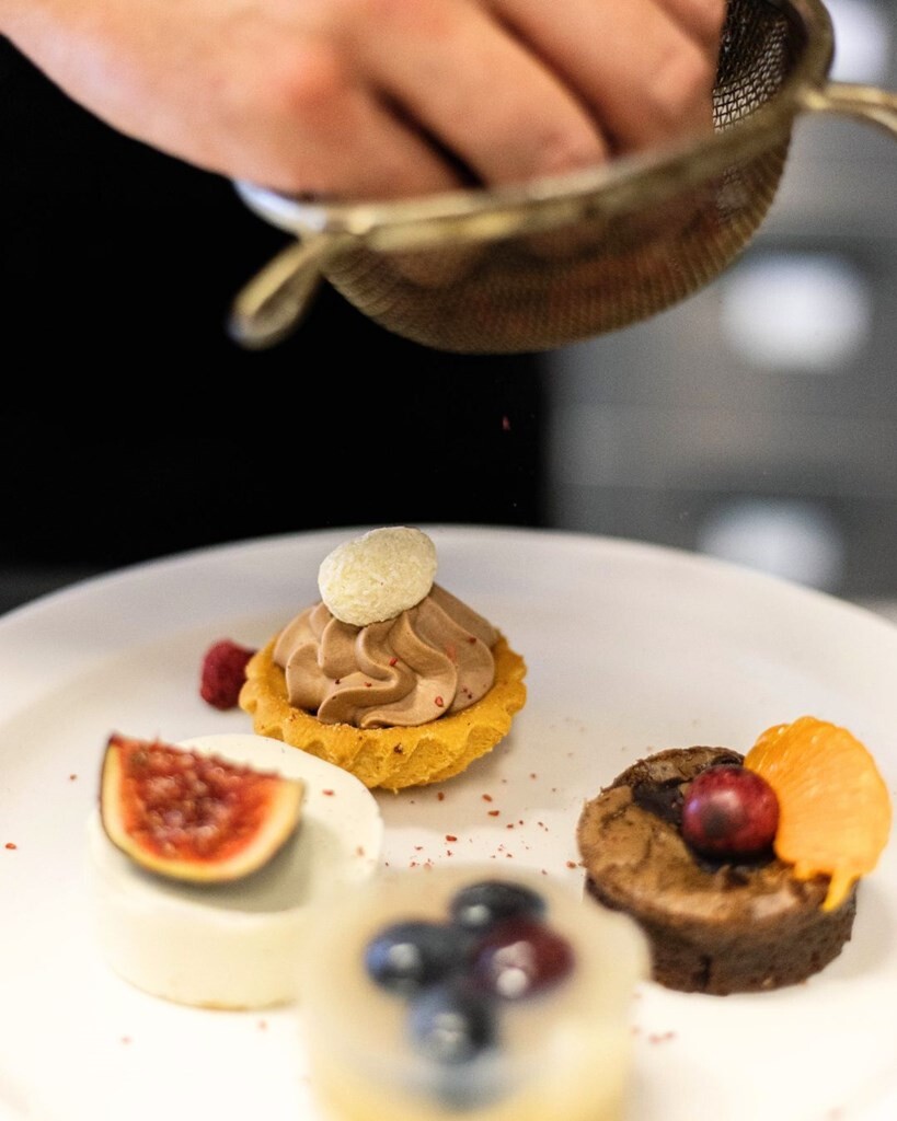 Menu restauracji opiera się na starannie wyselekcjonowanych, wysokiej jakości produktach oraz sezonowych składnikach. W karcie dań znajdują się zarówno przystawki, zupy, dania główne, jak i desery czy propozycje dla najmłodszych Gości. Wśród potraw można znaleźć m.in. sandacza, kaczkę, policzki wołowe, dania z sezonowych warzyw czy klasyczne sałatki i makarony.